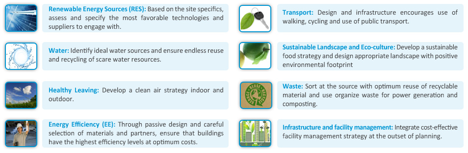 Mission and ApproachWe are driven by a mission to develop Zero-carbon Zero-waste real estate development communities around the world. This mission is led by the belief that unless we manage to have Zero as our target, we cannot claim to be truly sustainable. Reducing carbon emissions and waste to Zero is something we firmly believe is possible. This is not as difficult as it sounds. We are committed to making it happen at an affordable cost through using innovative real estate design, latest technology in sustainable construction, and through changing living habits. More specifically, our approach is focused on: ensuring that construction and operation costs of our projects are comparable or even more cost effective than conventional costs using to the maximum extent possible renewable energy sources while achieving the highest standards of energy efficiency ensuring waste and water are recycled and no harmful substances find their way to landfills or water streams engaging and creating value to all stakeholders including tenants, land owners, investors contributing to a higher quality of life to communities through cleaner air, cleaner water and a healthier lifestyle